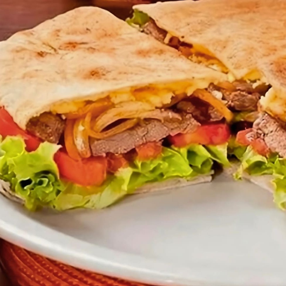 Beirute no pão sírio recheado com picanha grelhada no ponto, macia e suculenta, acompanhada de queijo derretido, ovo, alface crocante, tomate e maionese da casa. Um sanduíche generoso com carne nobre, perfeito pra quem quer matar a fome com estilo e muito sabor. Uma explosão de sabor em cada mordida!