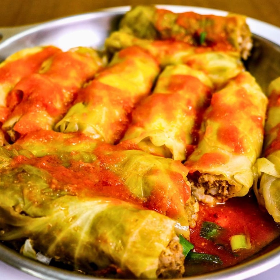 8 unidades de Folhas de repolho macias, recheadas com uma mistura bem temperada de arroz, carne moída e especiarias árabes. Cozido lentamente em molho de tomate caseiro até ficar suculento e cheio de sabor. O charuto de repolho é uma das receitas mais tradicionais da culinária árabe, perfeita para quem busca uma refeição caseira, aromática e cheia de história. 8 unidades