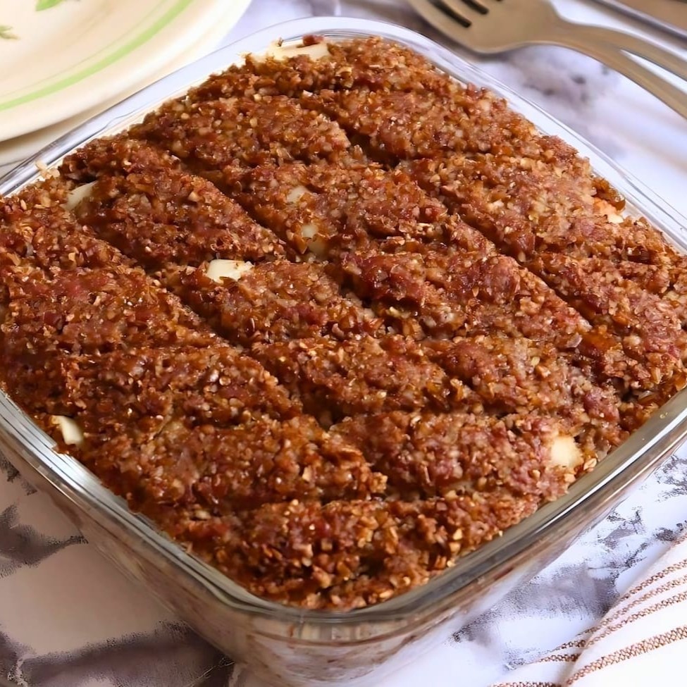 Acompanha pão sírio (1 unidade) Kibe assado no forno, feito com carne moída selecionada, trigo para kibe e temperos da casa, com toque de hortelã e cebola. Uma alternativa mais leve ao kibe frito, sem abrir mão do sabor tradicional da culinária árabe. Suculento por dentro, com uma casquinha dourada e irresistível. Ideal pra acompanhar pratos ou pedir sozinho!