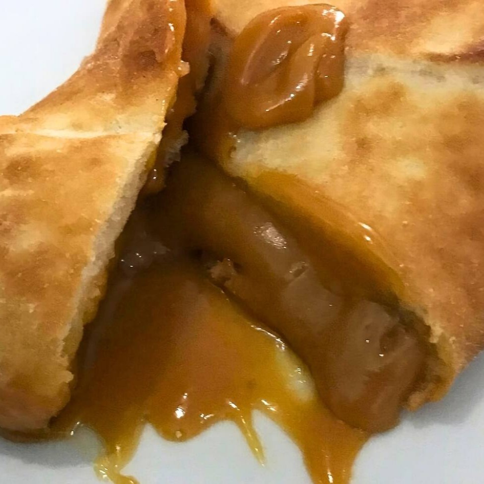 Esfiha fechada recheada com doce de leite cremoso e encorpado, que derrete na boca a cada mordida. A massa assada no ponto certo realça o sabor desse recheio tradicional e irresistível. Perfeita para quem ama um toque doce com aquele gostinho caseiro. Uma sobremesa simples, marcante e absolutamente deliciosa!