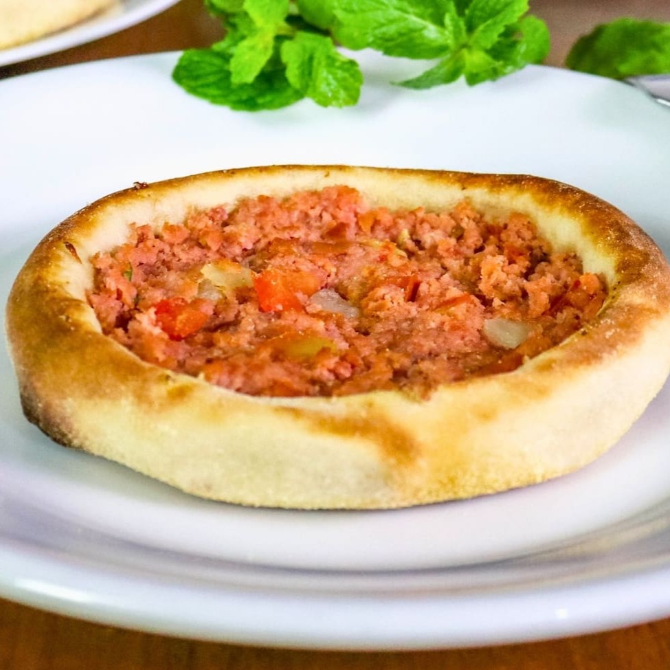 A clássica esfiha aberta de carne moída temperada no estilo árabe, com toque de limão, tomate e cebola. Sabor autêntico, suculento e irresistível!