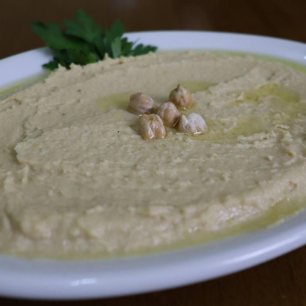 Acompanha 1 Unidade de Pão Sírio! Pasta tradicional de grão-de-bico batido com tahine (pasta de gergelim), limão, alho e azeite. Cremoso, nutritivo e cheio de sabor, o homus é uma ótima fonte de proteínas vegetais e fibras. Ideal para acompanhar pão sírio, saladas, kibes ou simplesmente saborear como entrada leve. Uma delícia saudável que traz o melhor da gastronomia árabe direto para sua mesa.
