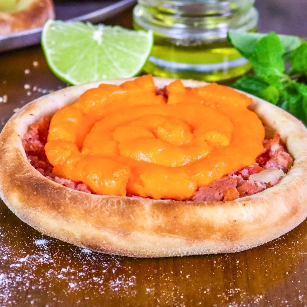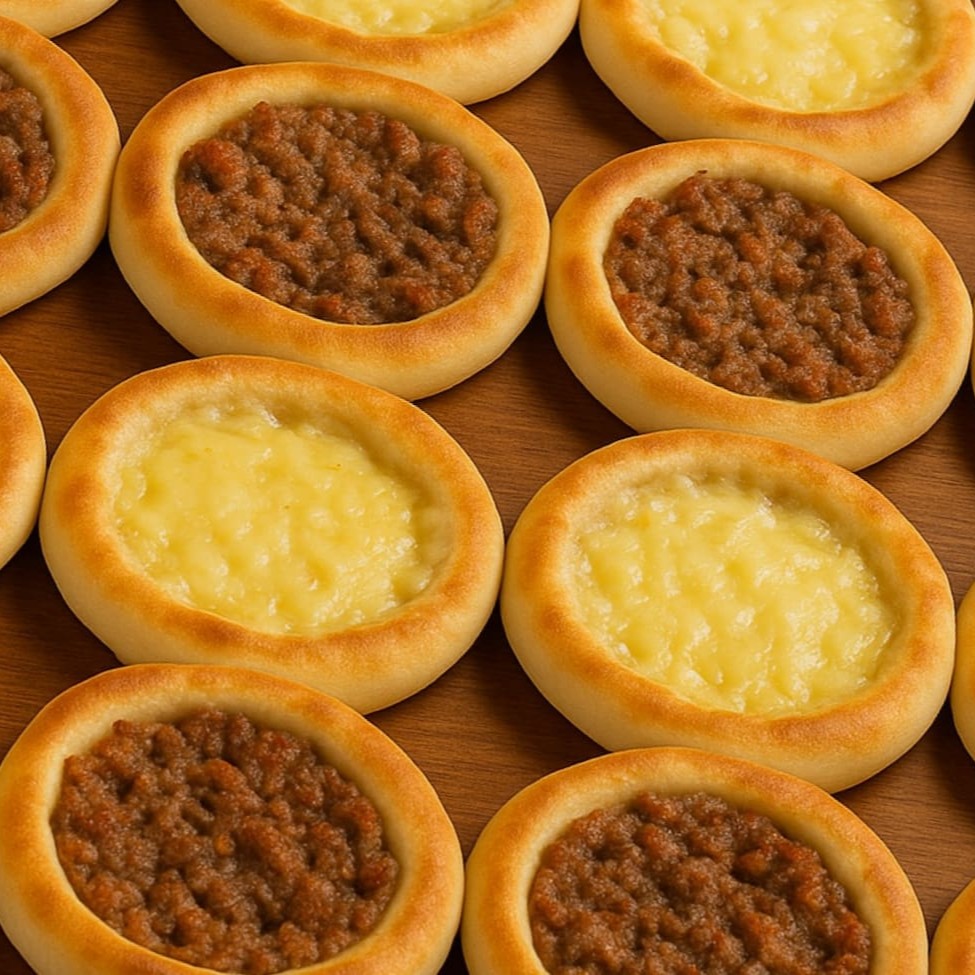 Esfiha aberta com carne moída bem temperada e Catupiry Original, cremosa e com sabor marcante. Uma explosão árabe-brasileira irresistível!