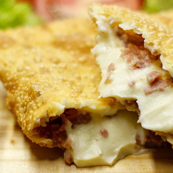 Um crocante e saboroso pastel recheado de queijo.