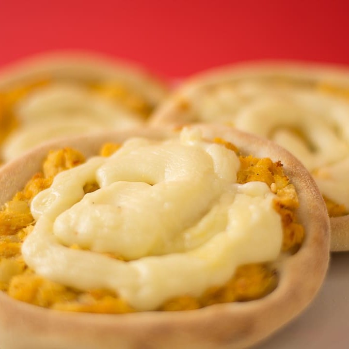 Uma deliciosa opção de fogazza com recheio de proteína de soja bem temperada.