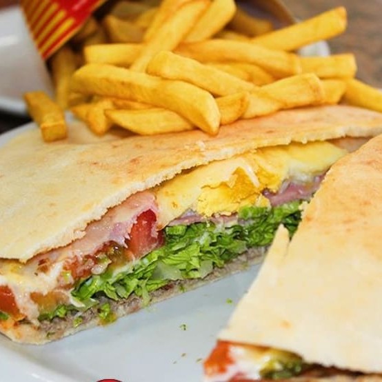 Um delicioso beirute com recheio de calabresa defumada, bacon, mussarela, presunto, ovo, alface, tomate e maionese. *Acompanha batata frita.