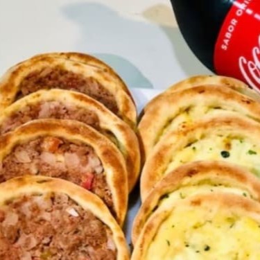 5 esfihas de carne + 5 esfihas de queijo + refrigerante (600ml).