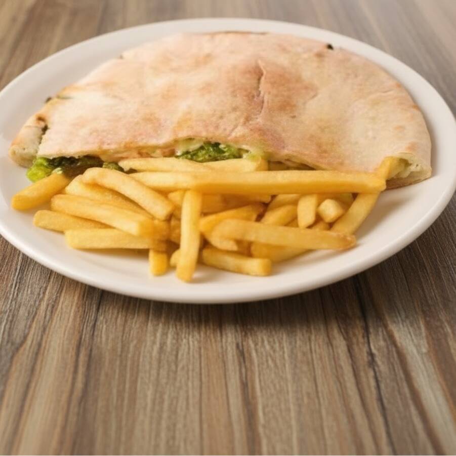 Um delicioso beirute com recheio de quatro queijos. *Acompanha batata frita