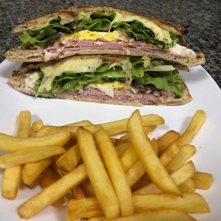 Todos acompanham pão sírio, presunto, queijo mussarela, ovo c/ bacon, alface, tomate e maionese. + porção de Batata