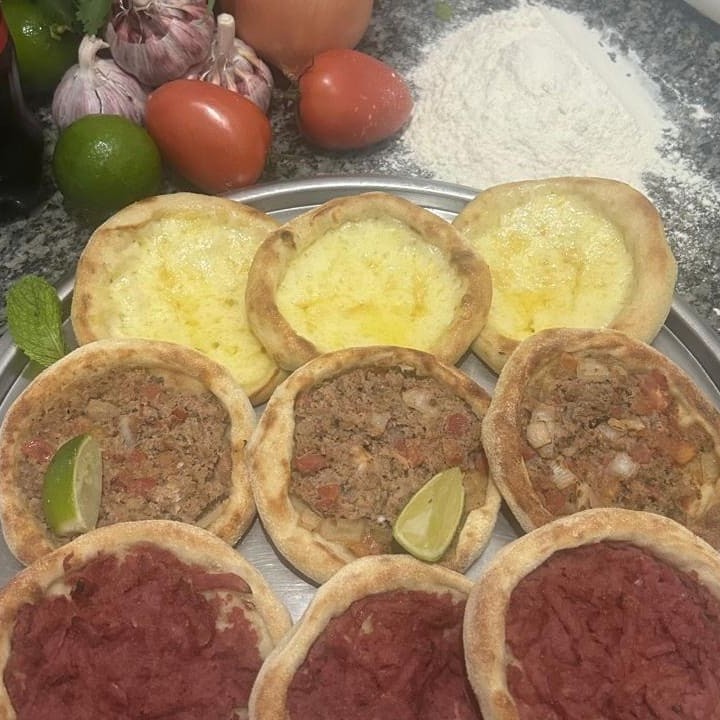 5 esfihas de carne, 5 esfihas de calabresa, 5 esfihas de queijo