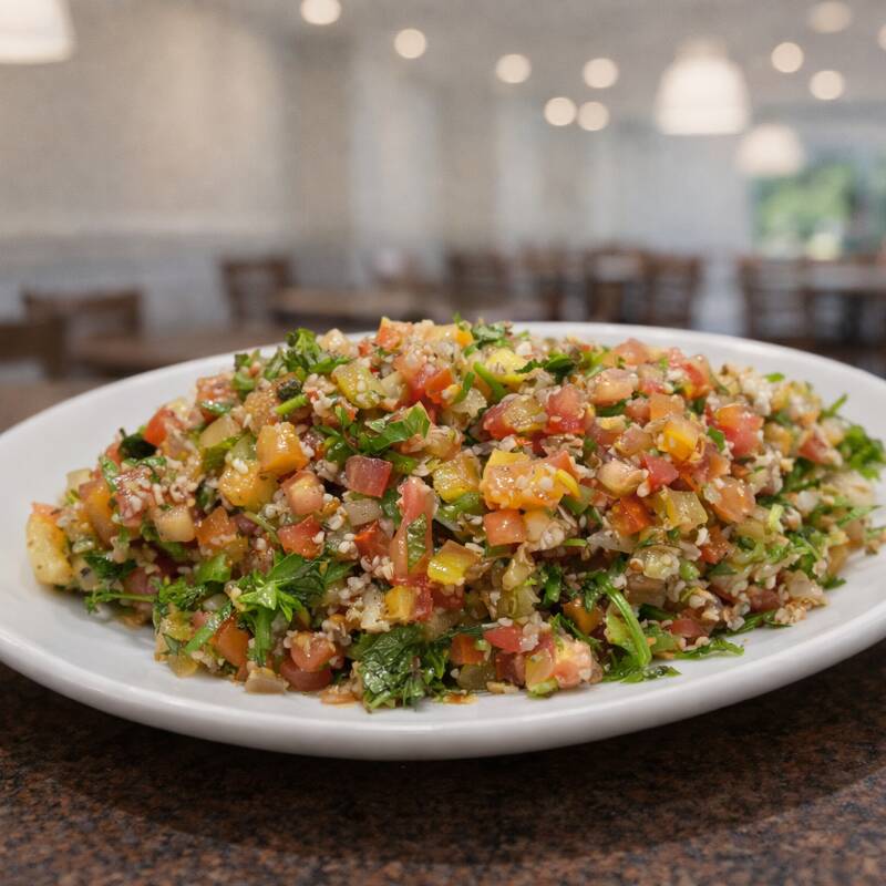 Kibe cru, Homus, Tabule, Charuto de uva e Kafta no espeto