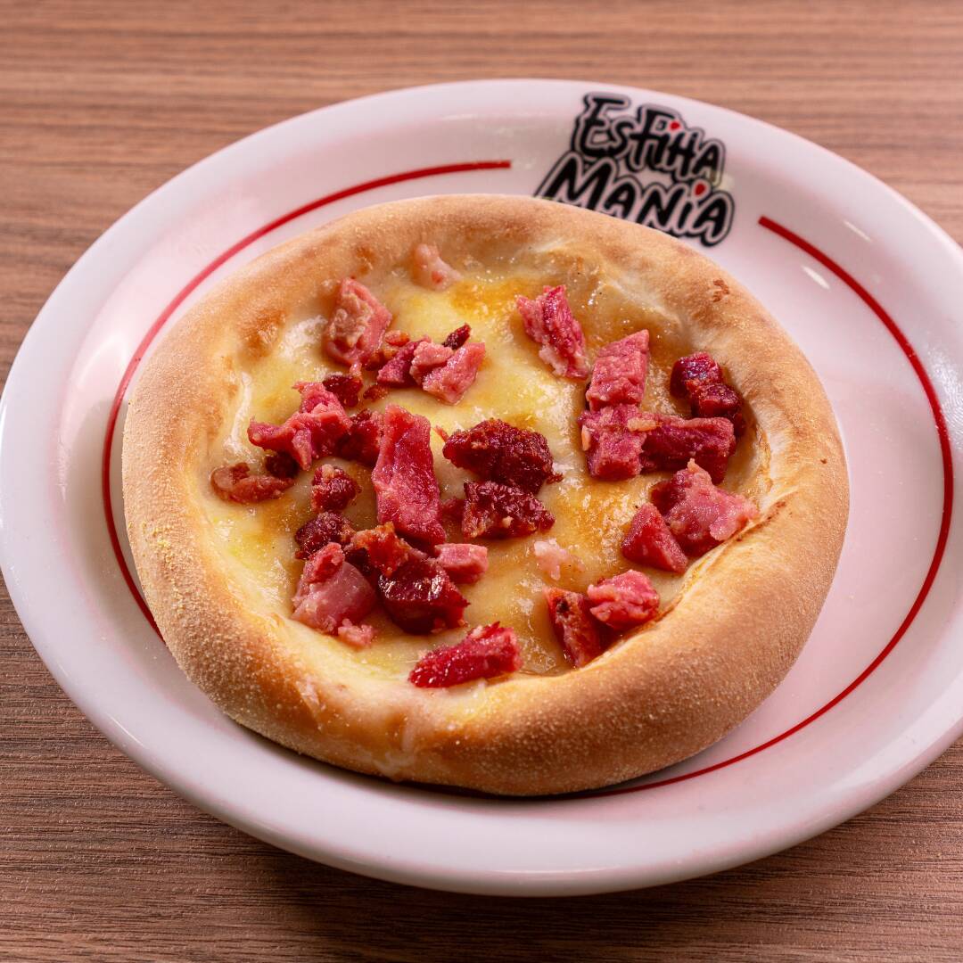 Massa leve e macia, recheada com mussarela e pedaços suculentos de bacon dourado.