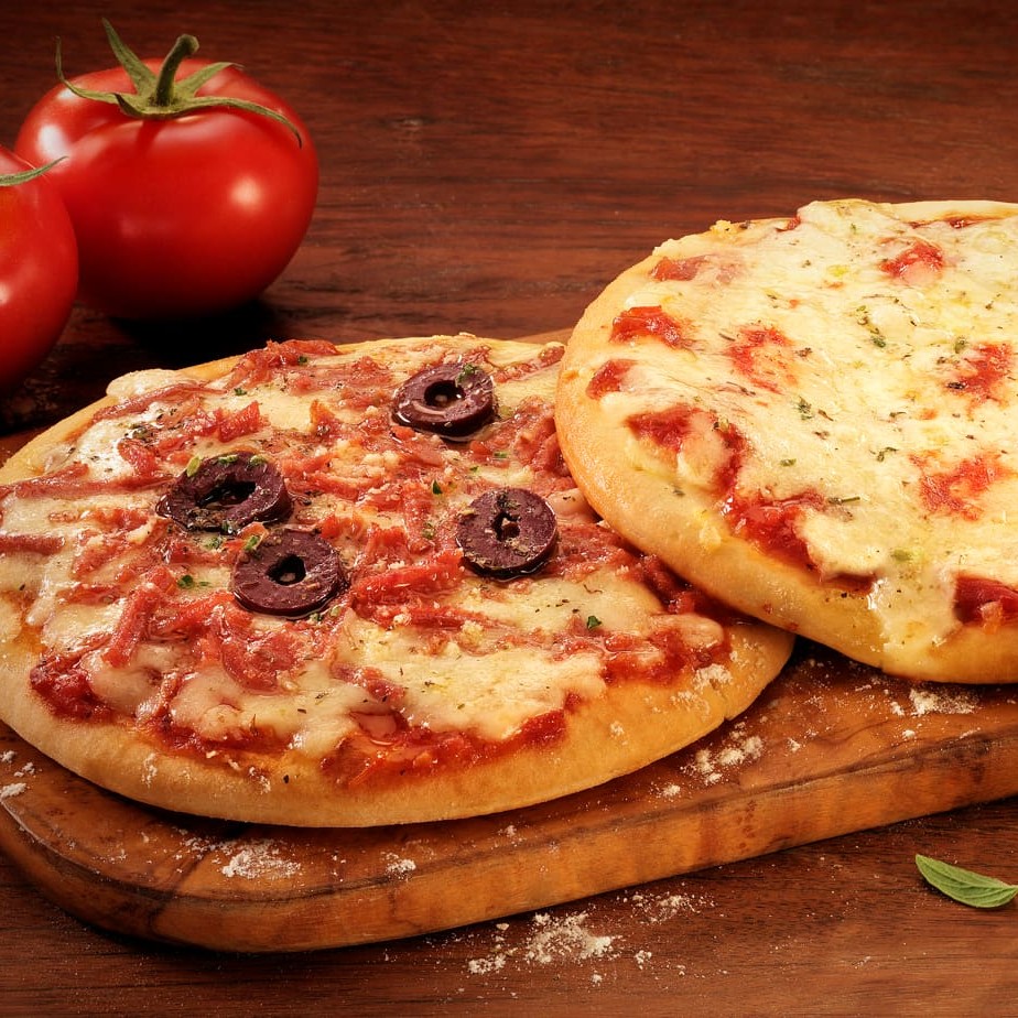 1 Pizza Mussarela + 1 Pizza Calabresa