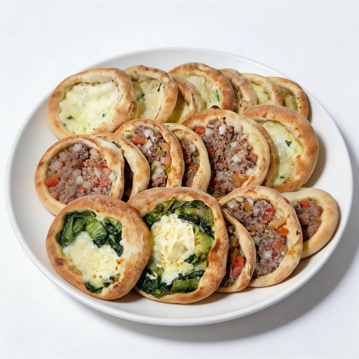 10 esfihas de queijo minas, e 10 esfihas de carne