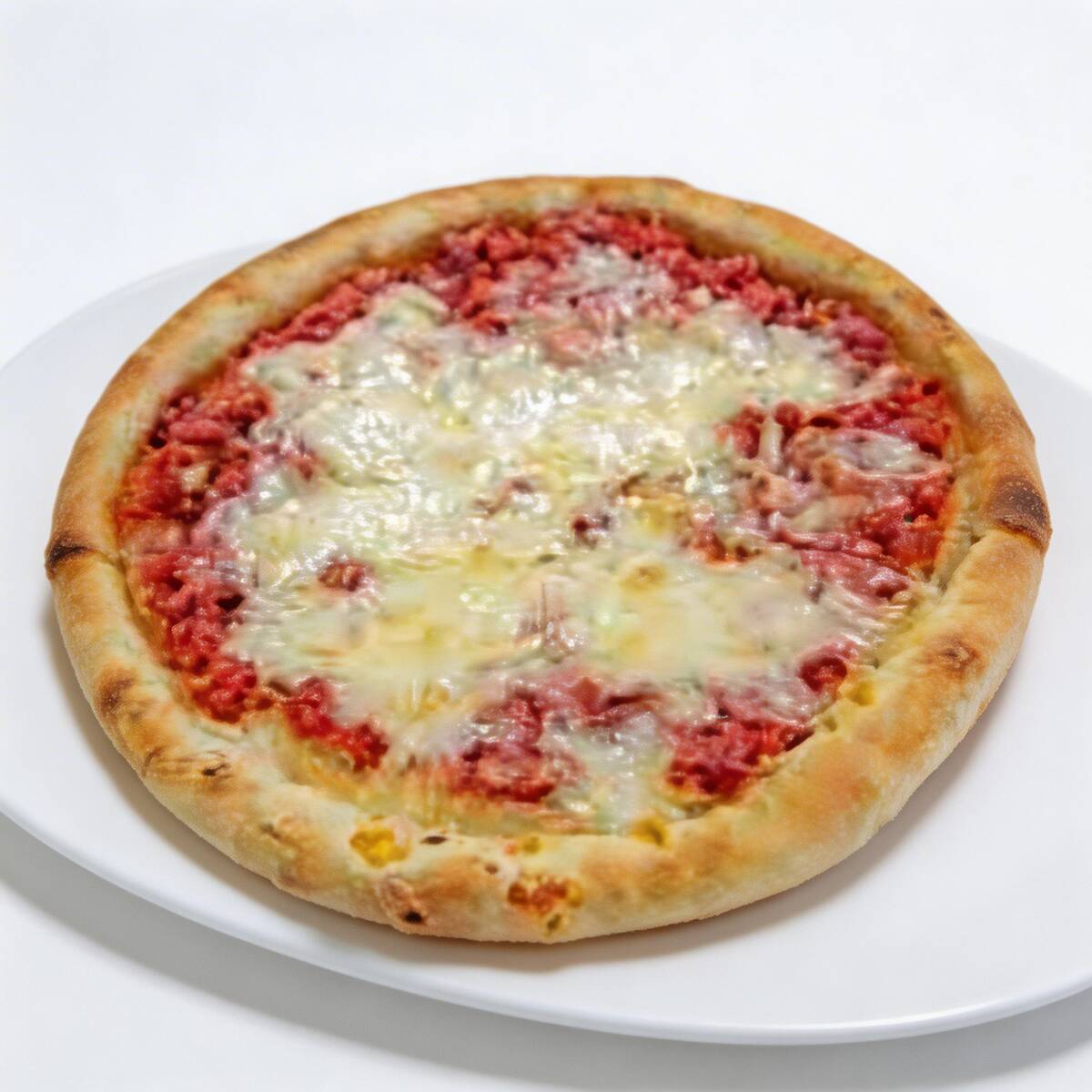 Molho tomate, presunto, mussarela, ovos, cebola, orégano e azeitona.