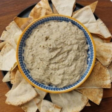 Pasta de berinjela assada temperada com molho sírio.