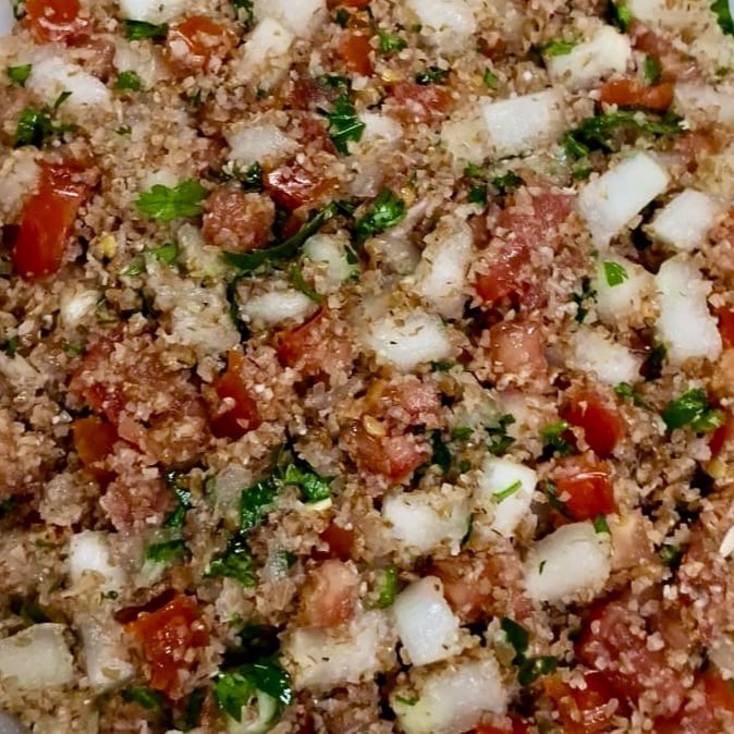 Salsinha, cebola, tomate, pepino picado com grão de trigo integral. Sabor irresistível e inesquecível você só encontra aqui!
