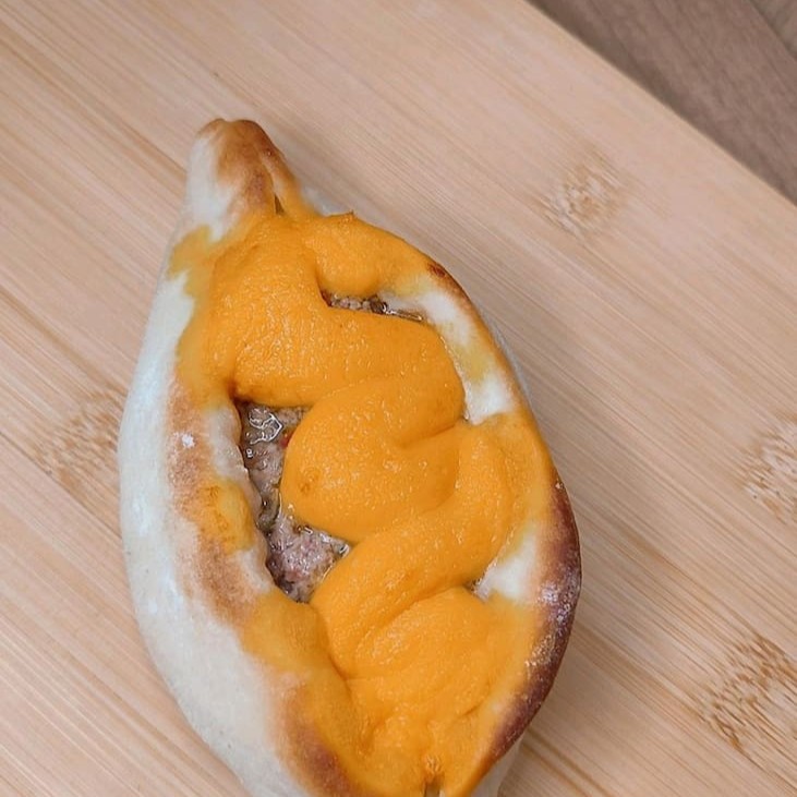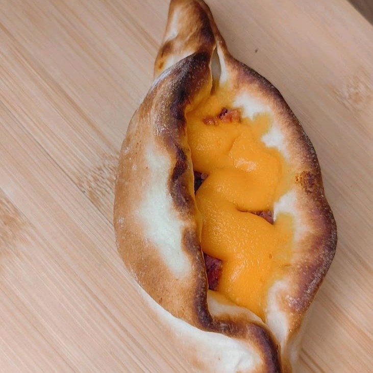 Esfiha canoa com calabresa bem temperada e suculenta, combinada com cheddar cremoso sobre massa fina e assada na hora. Uma explosão de sabor a cada mordida. (Aprox. 120g)