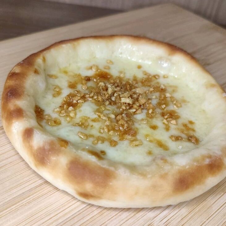 Esfiha aberta de queijo com toque especial de alho. Massa leve e crocante, queijo derretido e sabor marcante que vai surpreender o seu paladar! (aprox.100g)