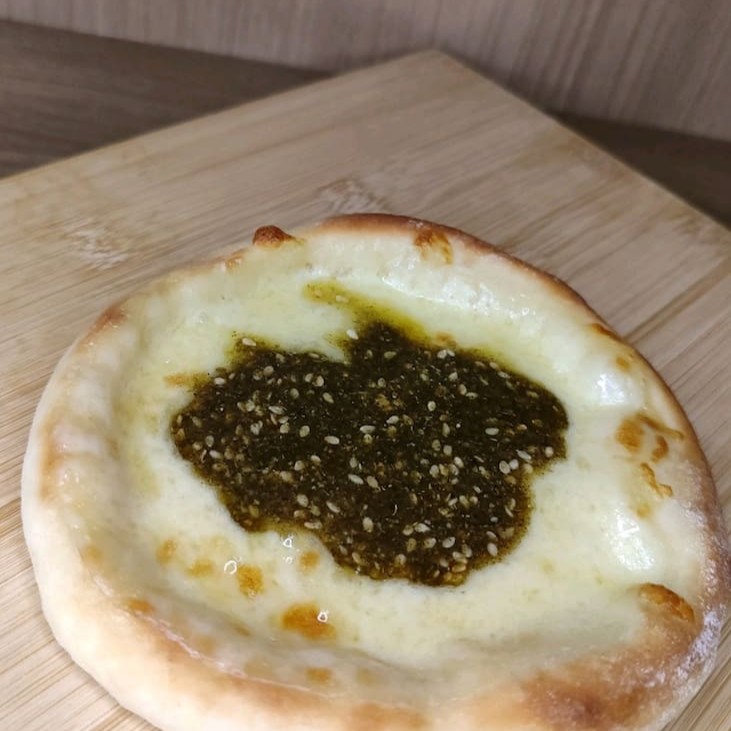 Esfiha aberta de queijo com zatta, massa leve, queijo derretido e o toque aromático do zatta que realça ainda mais o sabor. Uma combinação única e irresistível! (aprox.100g)