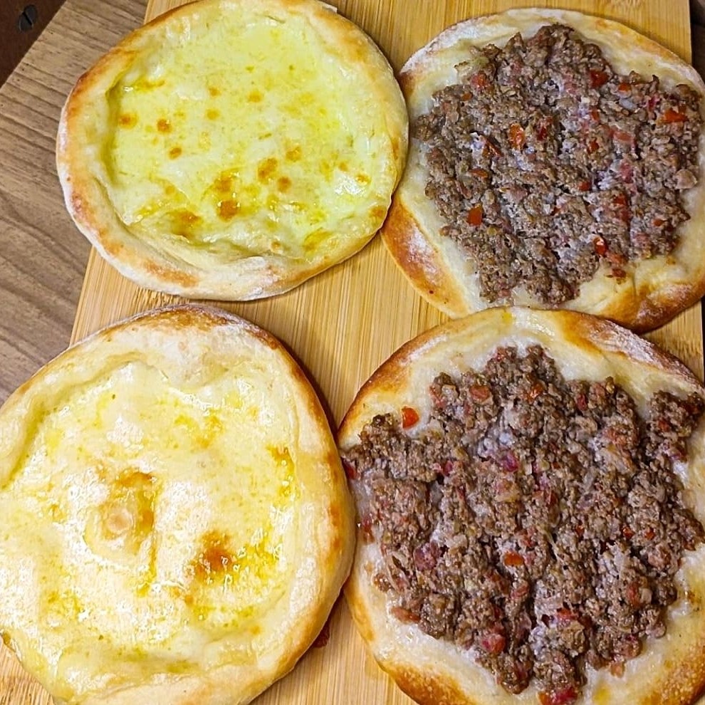 Duas esfihas abertas com carne temperada e duas com mussarela cremosa, assadas na hora. Ideal para quem quer variedade e muito sabor em uma só refeição! (aprox.400g)