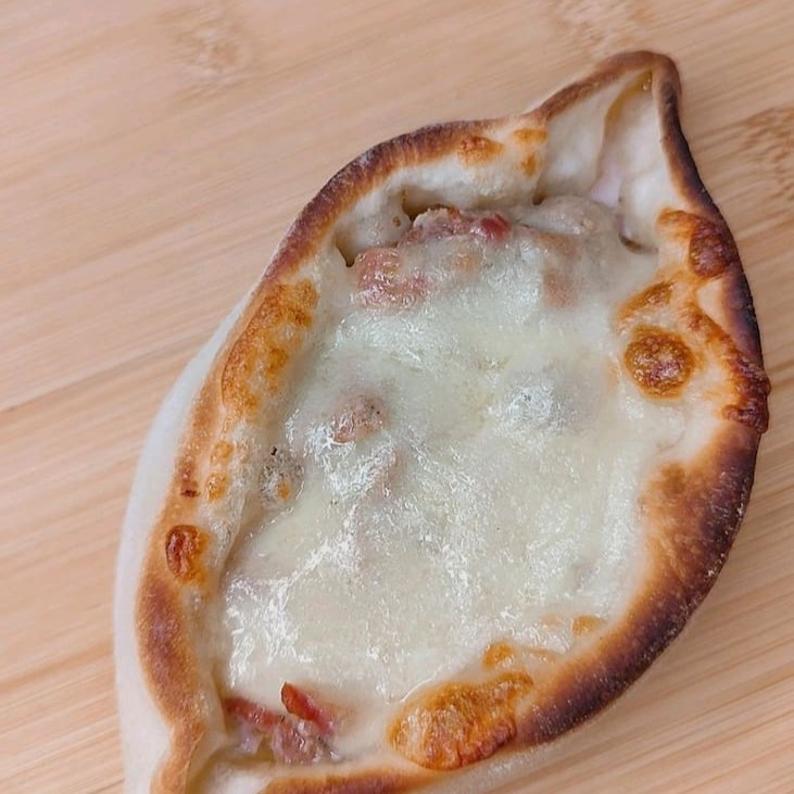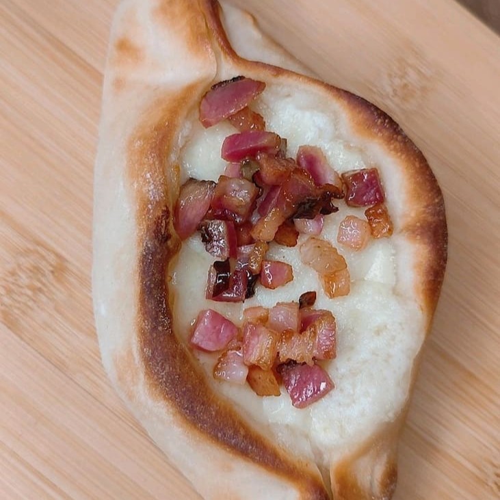 Esfiha canoa com massa fina e assada na hora, recheada com queijo derretido, Catupiry cremoso e finalizada com bacon crocante. Uma combinação rica e irresistível. (Aprox. 120g)