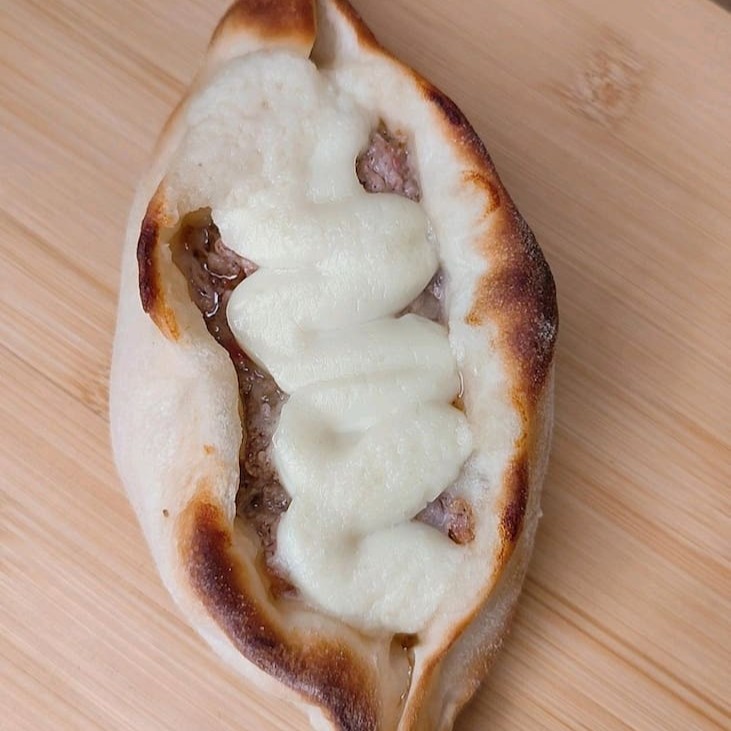 Esfiha canoa recheada com carne moída bem temperada e uma generosa camada de queijo derretido. Massa fina, assada na hora, com muito sabor em cada mordida. (Aprox. 120g)