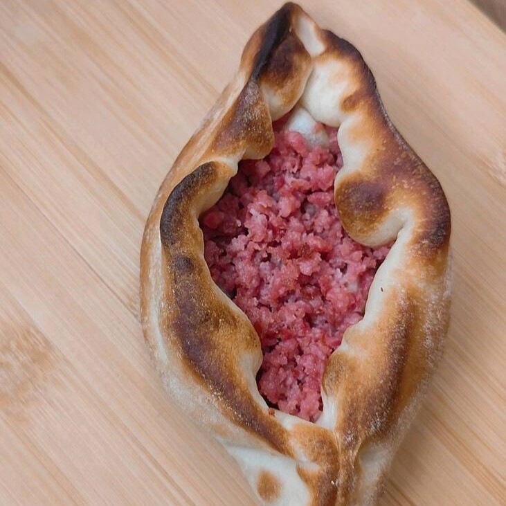 Esfiha fechada com massa leve e assada, recheada com carne moída bem temperada e suculenta. Ideal para quem gosta de sabor caseiro e textura macia em cada mordida. (Aprox. 100g)