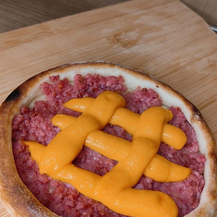 Esfiha canoa com carne moída bem temperada e cheddar cremoso, sobre massa fina e levemente crocante, assada na hora. Uma combinação intensa e cheia de sabor. (Aprox. 120g)