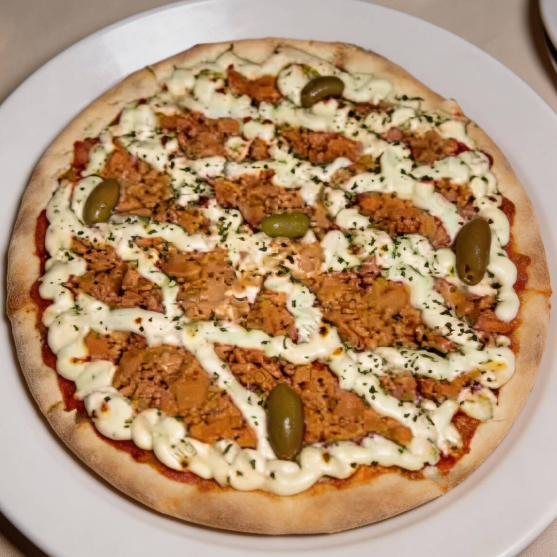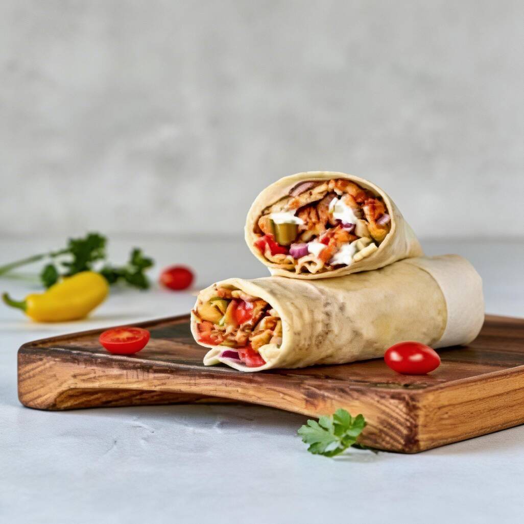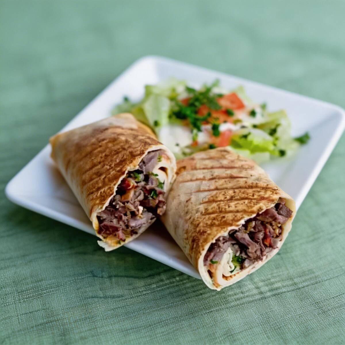 Pão Sírio, Frango, Carne, Batata Frita, Tomate, Cebola, Salsa, Pasta de Alho.