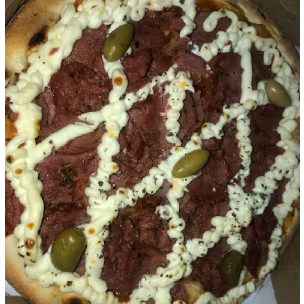 3 pizzas 1 calabresa 1 toscana 1 mussarela obs : pizza sem borda