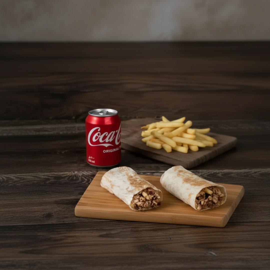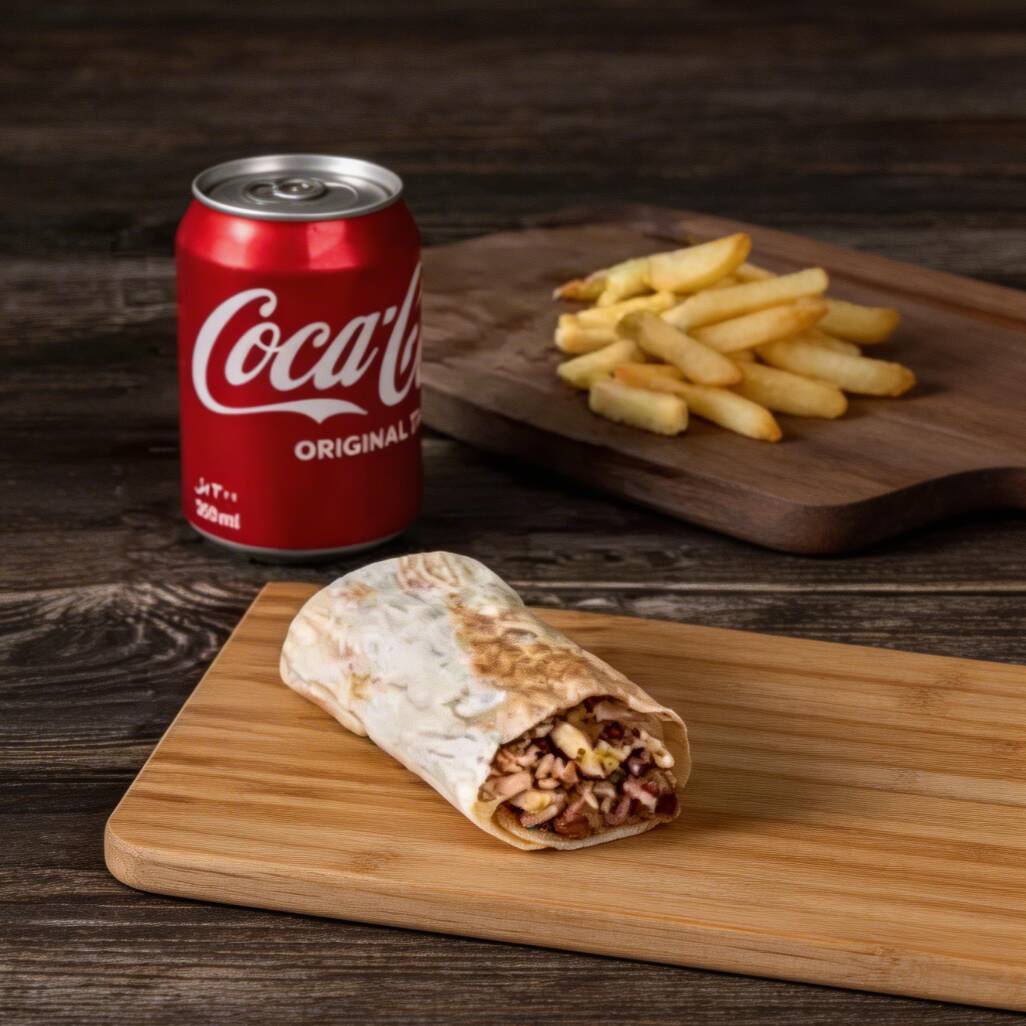 Pão Sírio, Carne, Tomate, Cebola, Salsa, Pasta de Alho,Batata frita