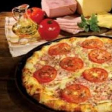 metade mussarela e metade portuguesa , presunto,ovos,ervilha,cebola.cobertura de mussarela