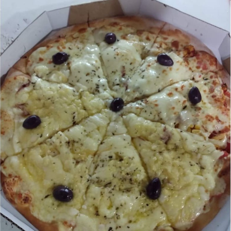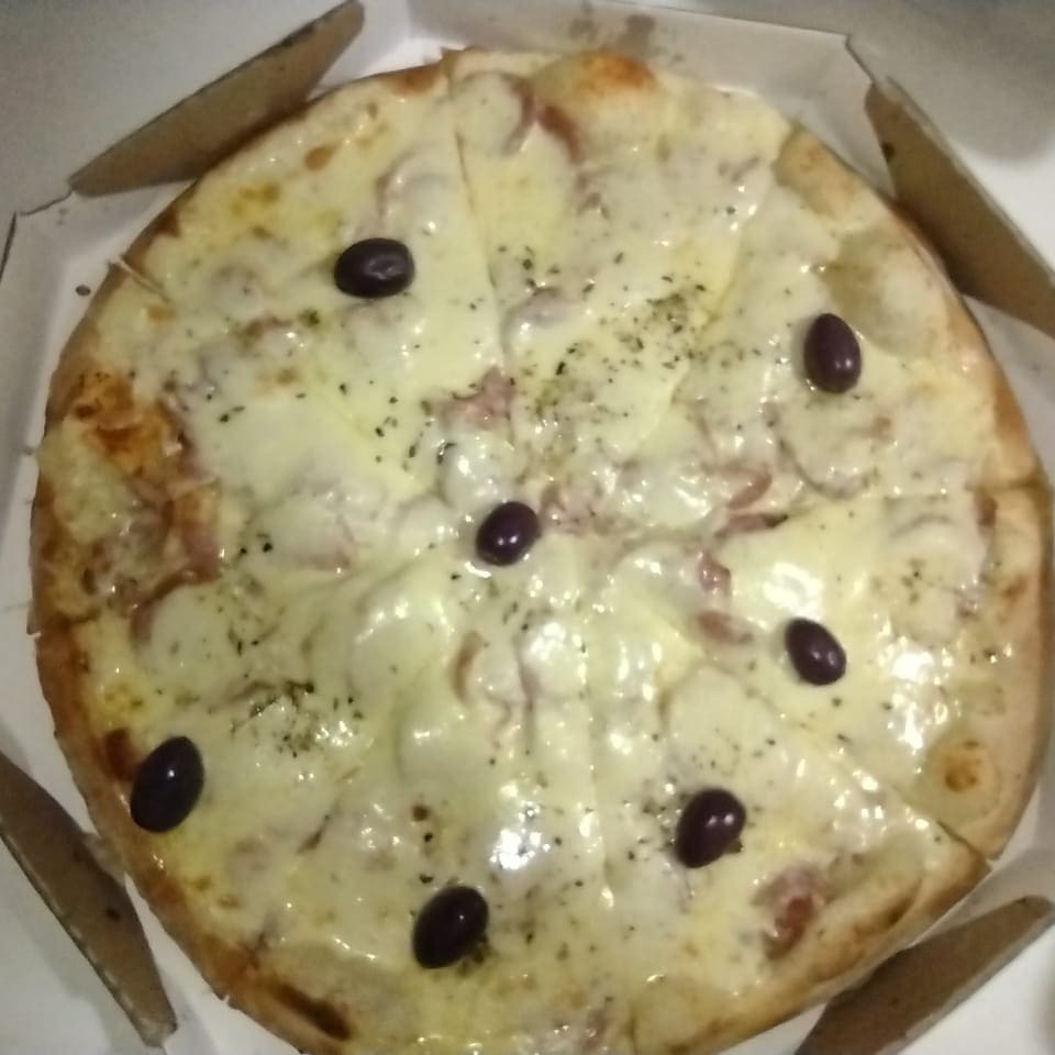 Mussarela, presunto, ervilha, cebola e ovo