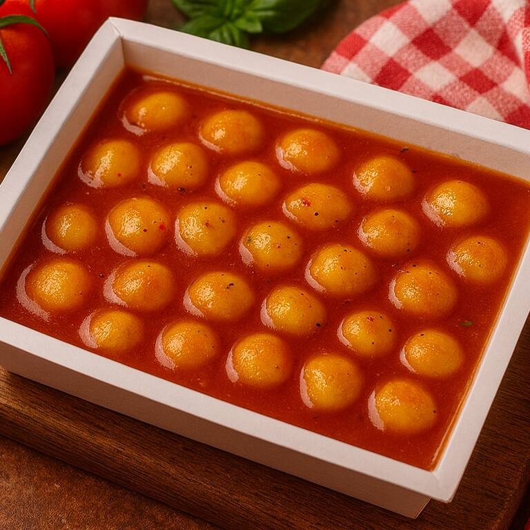 Macio por dentro, saboroso por fora! Nosso nhoque artesanal mergulha em um molho pomodoro fresco e encorpado, com aquele tempero que lembra comida da nona. embagem selada na hora para manter a qualidade, em 500g de puro aconchego. Peça já e receba fresquinho e irresistível!
