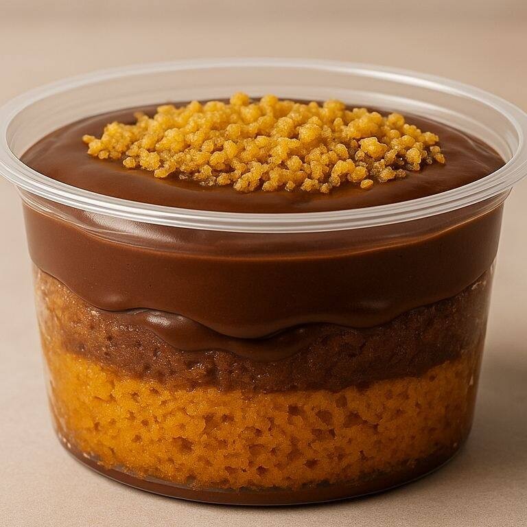 Sabor de casa no pote! 200g de bolo de cenoura com muito chocolate cremoso em cada colherada
