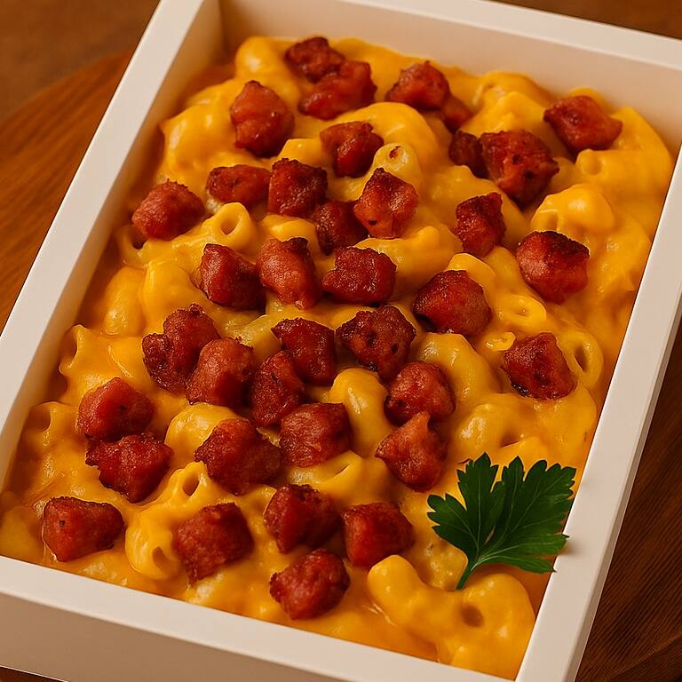 Uma explosão de sabor! Macarrão caracolino cremoso, coberto por queijo cheddar derretido e finalizado com cubos de bacon crocante. Uma combinação irresistível em uma marmita selada de 500g, que mantém o calor e o sabor até a última garfada. Clique em pedir e se presenteie hoje mesmo!