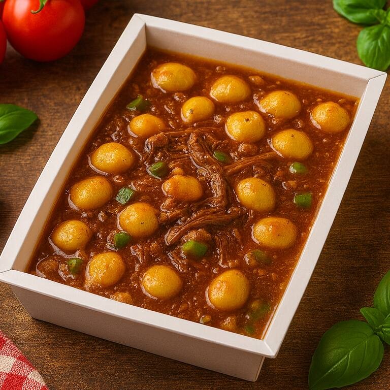 O melhor dos dois mundos: nhoque fofinho com carne louca desfiada e molho rico em sabor. Uma marmita de 500g selada para manter o frescor e a suculência até chegar na sua mesa. Peça já e se delicie!