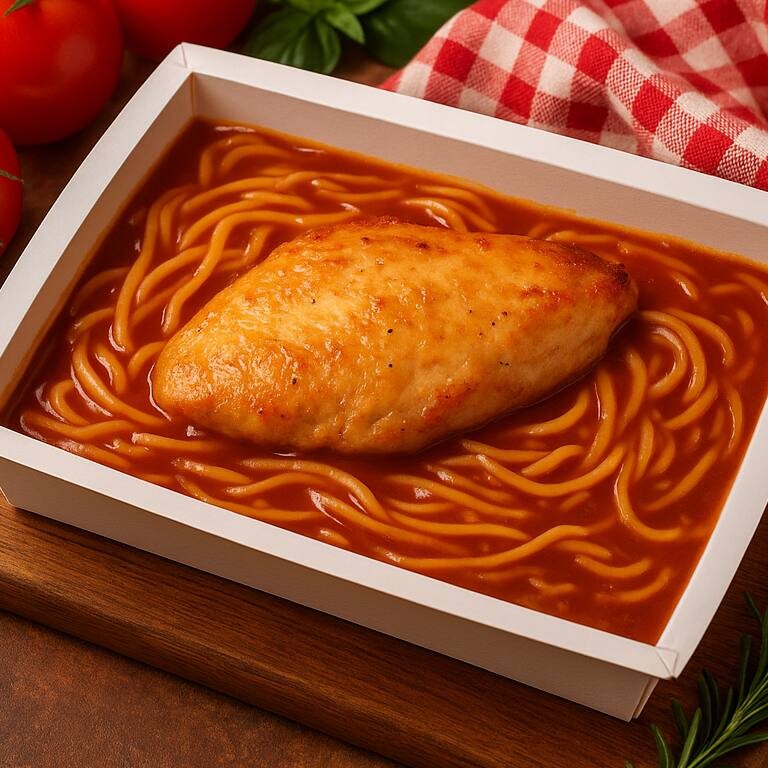 Espaguete coberto por um molho pomodoro fresco e encorpado, preparado com tomates selecionados e temperos aromáticos. Acompanhado de filé de frango grelhado suculento, feito na hora para manter todo o sabor. Marmita selada de 500g, mantendo o frescor e a qualidade até chegar na sua mesa. Peça agora e viva essa experiência italiana com um toque saudável!