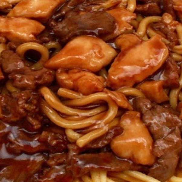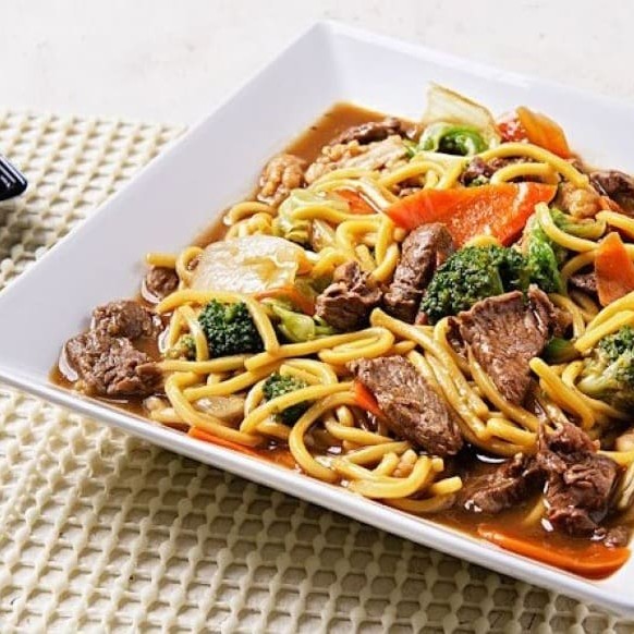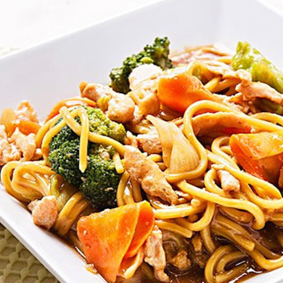 (02 Unidades no tamanho Pequeno, cada unidade serve 1 Pessoa) Saboroso macarrão chinês com carne, frango e legumes selecionados ao molho shoyu.