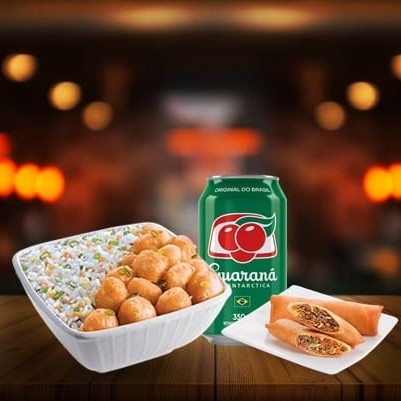1 2 Frango À Passarinho + 1 2 Arroz Chop-suey + 1 Rolinho + 1 Bebida