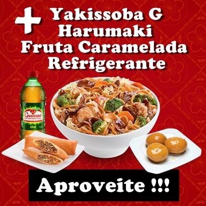 Yakissoba Grande + 2 Rolinho + 2 Fruta Caramelada + 1 Refrigerante 600 Ml