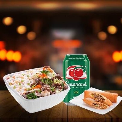 Combinação Irresistível Serve 1 Pessoa Deliciosos pedaços de carne bovina fatiada com legumes selecionados ao molho shoyu Arroz Chop-Suey é o nosso tradicional arroz soltinho refogado com flocos de ovo, cubinhos de cenoura e cebolinha. Saboroso Rolinho Primavera Com massa fina crocante e sequinha. Refrigerante Lata Bem Gelado.
