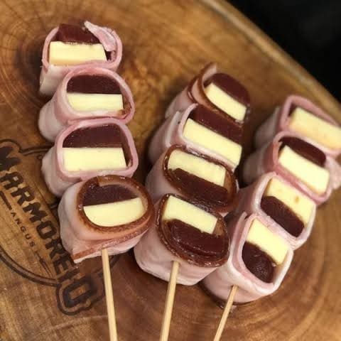Goiabada e queijo coalho enrolado com bacon