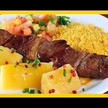 Arroz Feijao Mandioca Frita Vinagrete E 1 Espetinho.