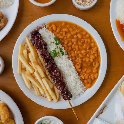 Arroz,feijão.batata Frita,vinagrete E 2 Espetinhos.