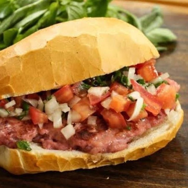 Pâo Francês, Espeto de kafta , Vinagrete e um delisio Pão Francês , Espetinho de Kafta, Vinagrete e um delicioso queijo Pão Francês , Espetinho de Kafta, Vinagrete e uma deliciosa Mussarela Derretida.