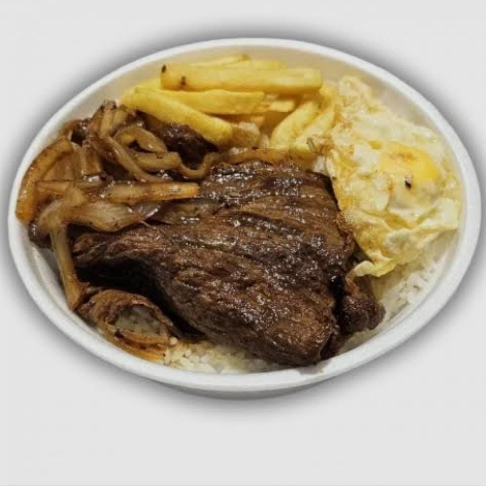 arroz , feijão , contra filé , fritas , ovo , salada , farofa