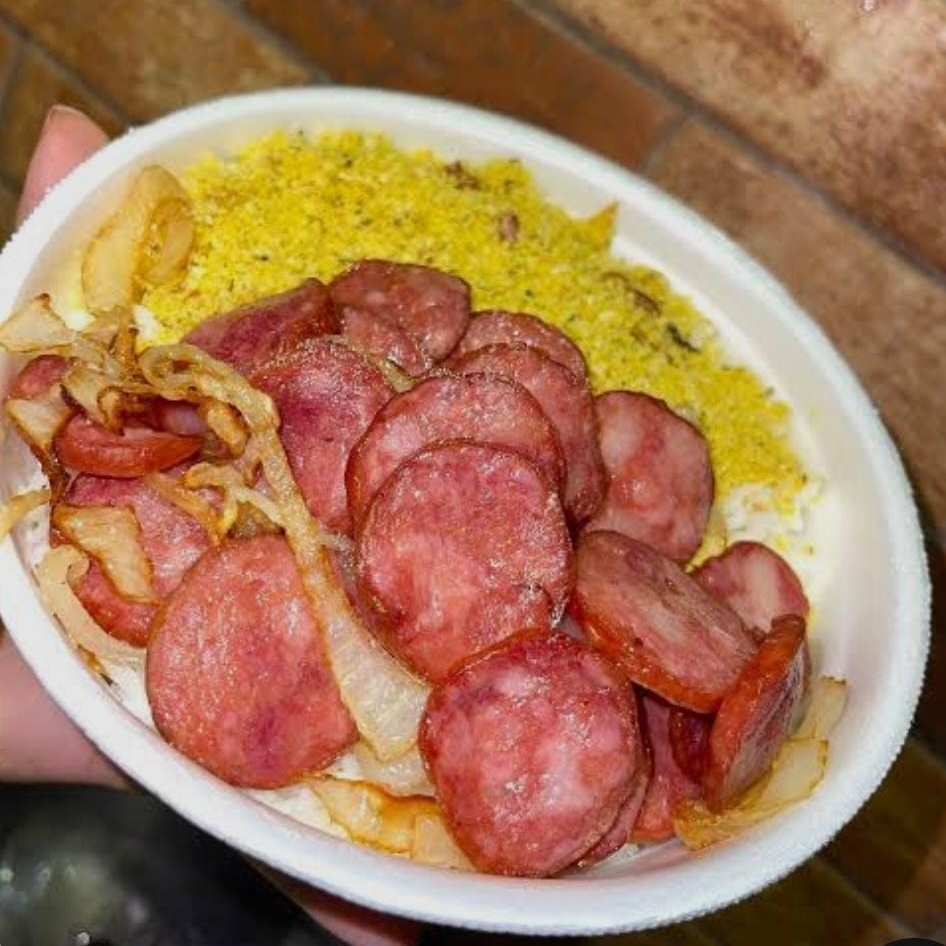 arroz , feijão , macarrão , calabresa acebolada , farofa