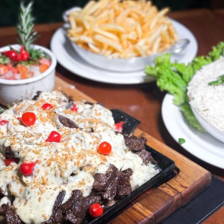 Strogonoff de Filé Mignon acompanha Arroz e fritas _ _#Torresmo #Salgadinho #Picanha #porções #Filémignon #pratosespecias #Bacalhau #feijoada #carnes #caldos #saladas #panquecas #lanches #bebidas #delivery #